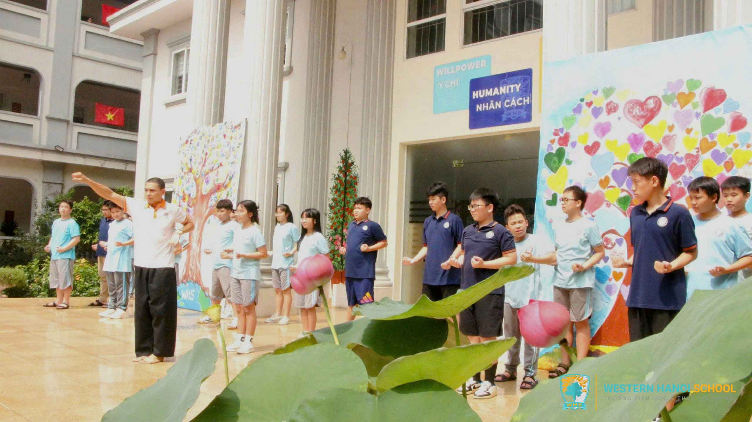 Sáng nay, sân trường Tiểu học & THCS Tây Hà Nội (WHS) rộn ràng và sôi động hơn thường lệ. Tiếng hô đồng thanh vang dội, những động tác mạnh mẽ và dứt khoát của học sinh khối Trung học cơ sở đã tạo nên một bức tranh sống động về tinh thần rèn luyện, ý chí kiên cường và niềm hứng khởi trong tiết học võ thuật.