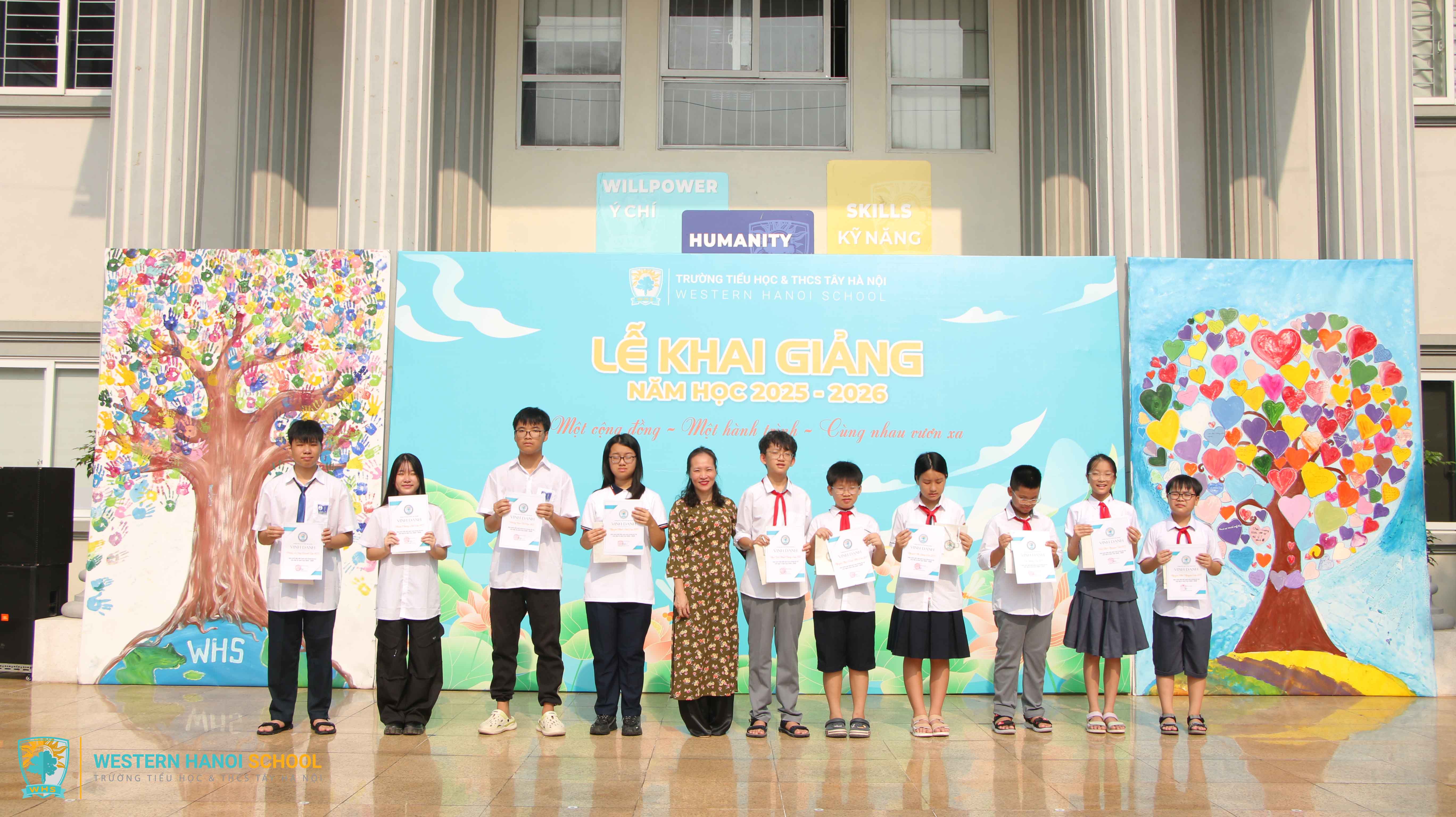 Tại buổi sinh hoạt dưới cờ tháng 9, Trường Tiểu học & THCS Tây Hà Nội (WHS) đã long trọng tổ chức lễ vinh danh và khen thưởng cho những học sinh đạt thành tích xuất sắc trong kỳ thi vào lớp 6 và lớp 10 năm học 2025 - 2026.
